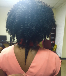 Because our hair type has a tendency to shrink and tangle easily, washing in sections is ideal for retaining length. Whether you section your hair in big braids, big twists, or via hair clips/holders, keeping the hair stretched and bound will help to prevent detangling nightmares and breakage.